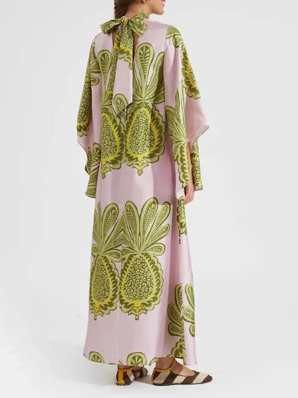Artema Green Długa sukienka etno z szarfą