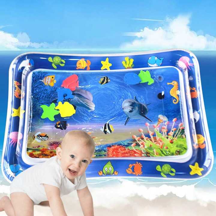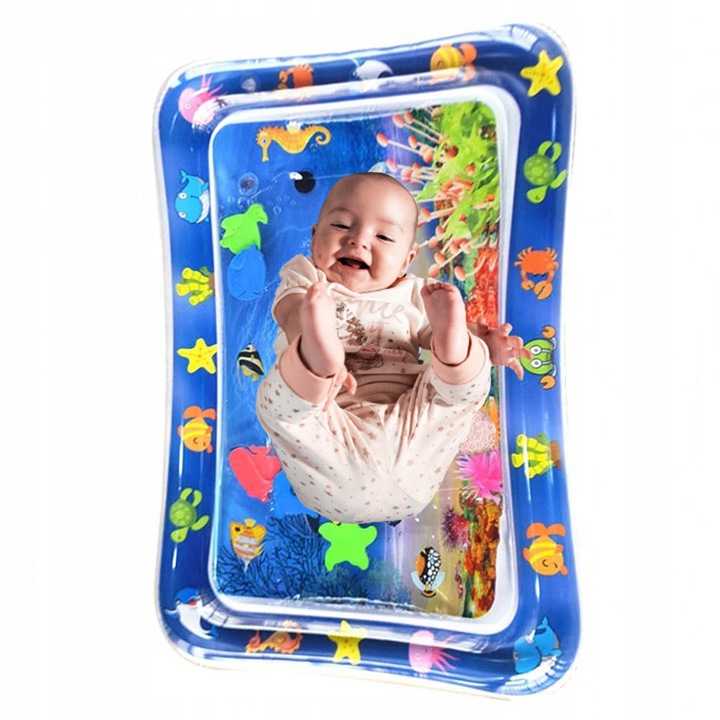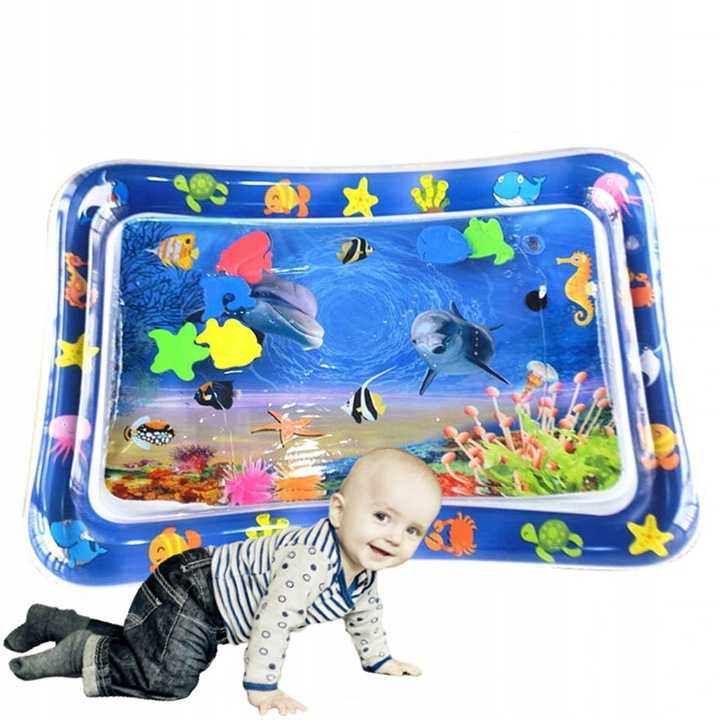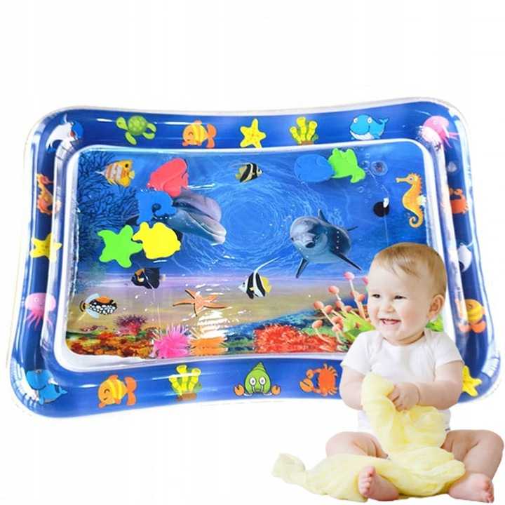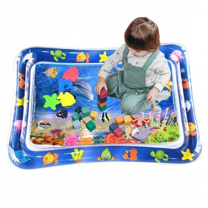 Dmuchana mata wodna to świetne rozwiązanie dla rodziców, którzy lubią łączyć przyjemne z pożytecznym. Świetna zabawa, funkcja sensoryczna, rozwój koordynacji, sposób na kolki i ból brzuszka to tylko kilka z zalet tego gadżetu