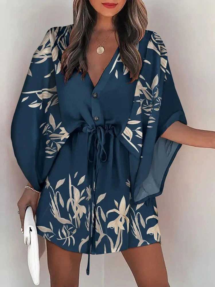 Krótka sukienka tunika wiązana w pasie