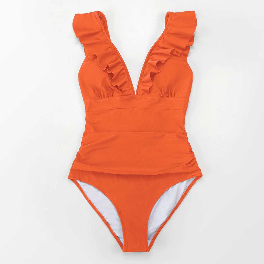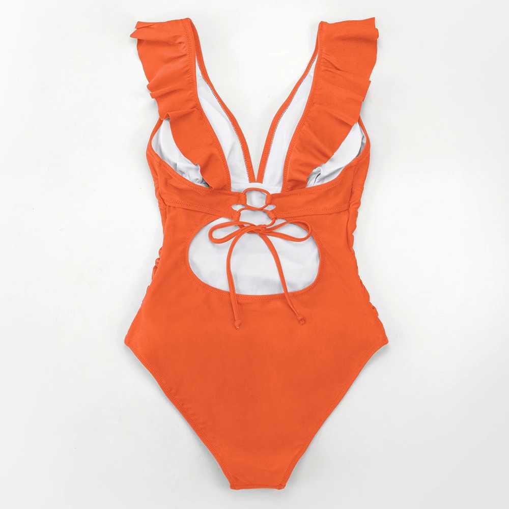 Strój kąpielowy jednoczęściowy z falbanką orange