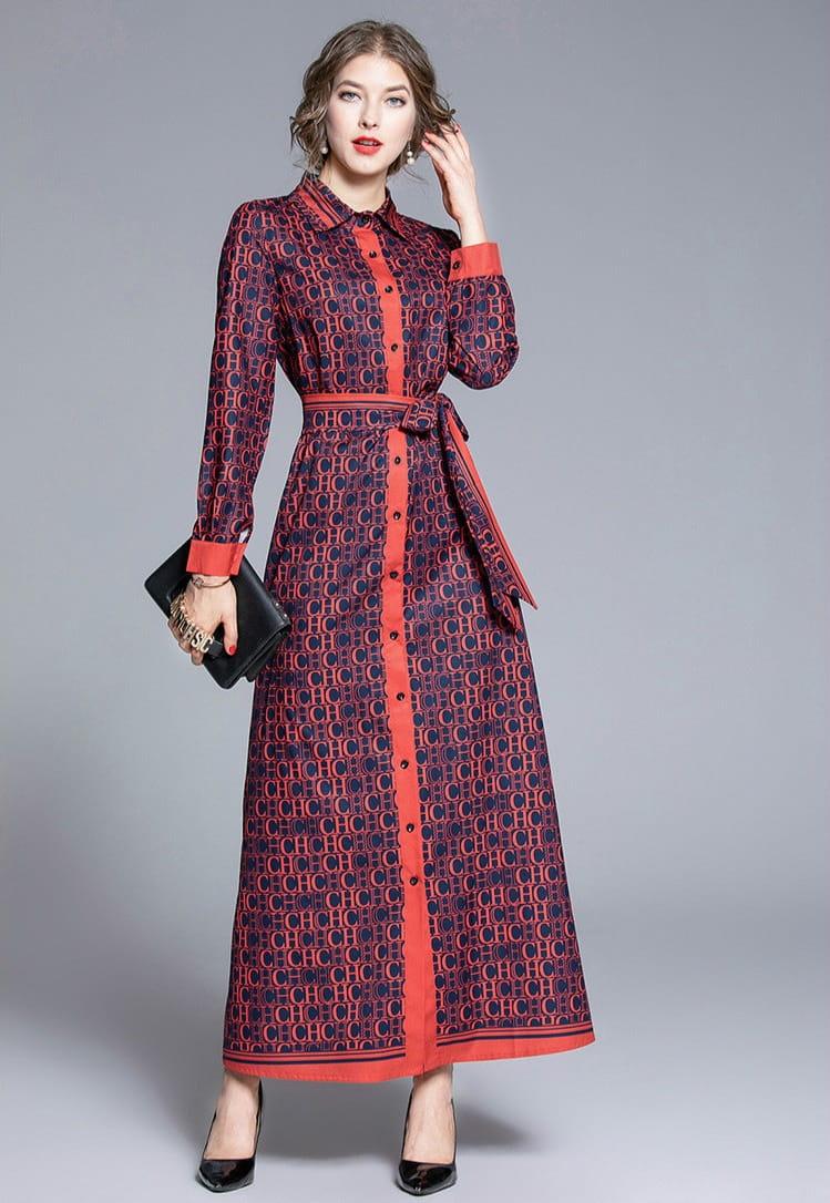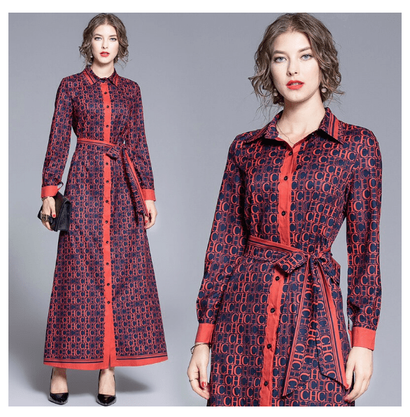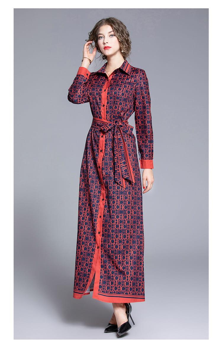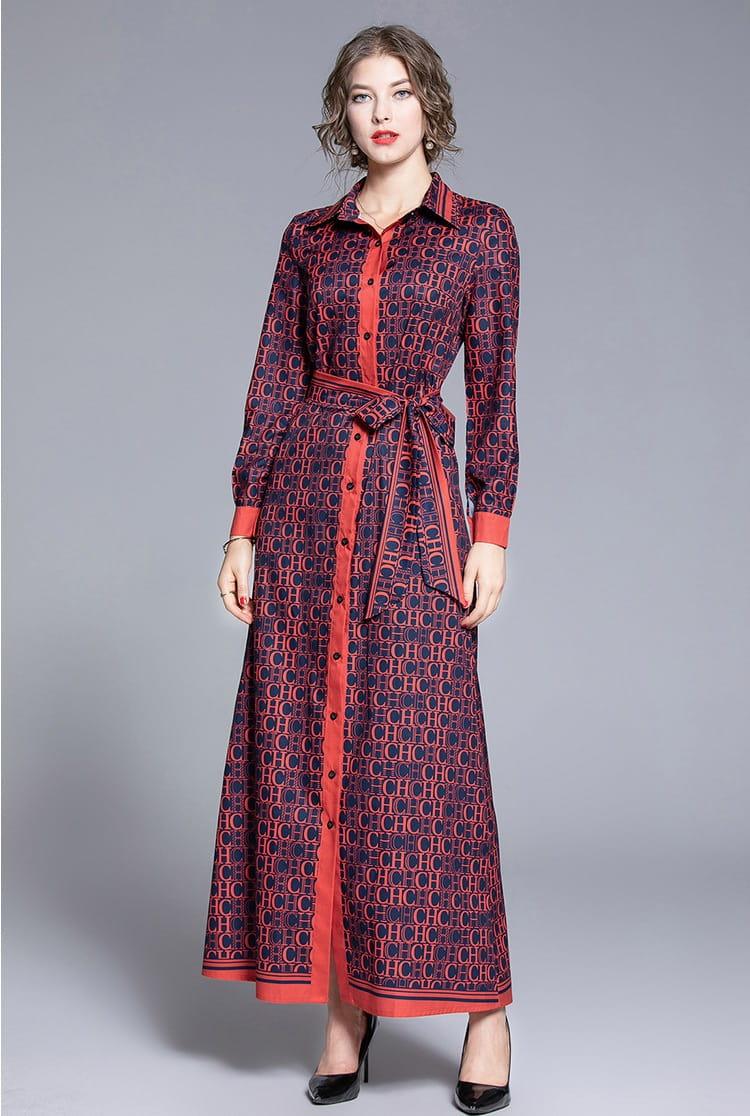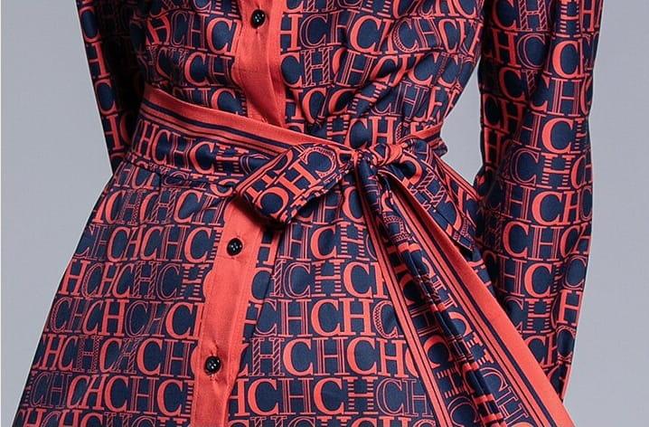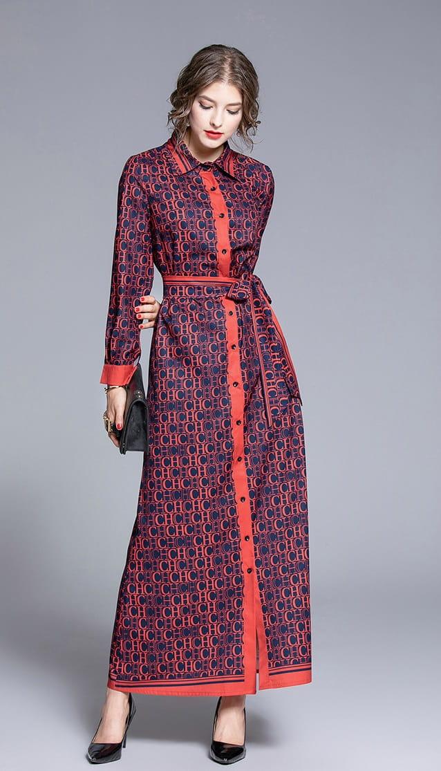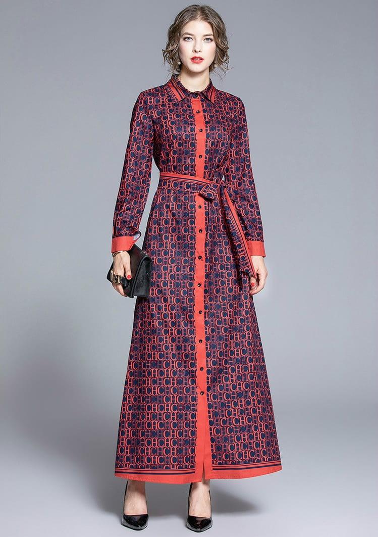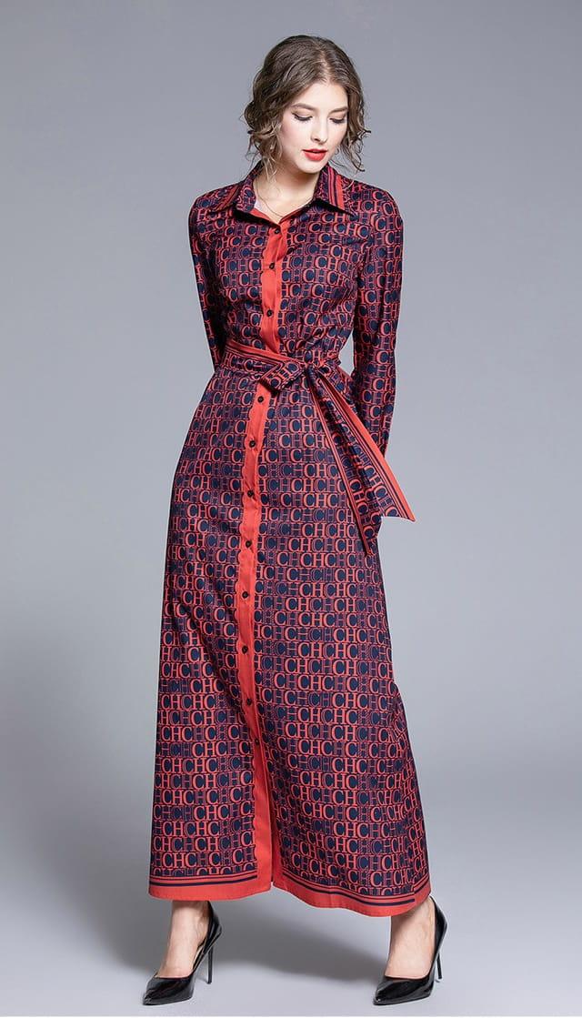 Sukienka z kołnierzykiem wiązana w pasie