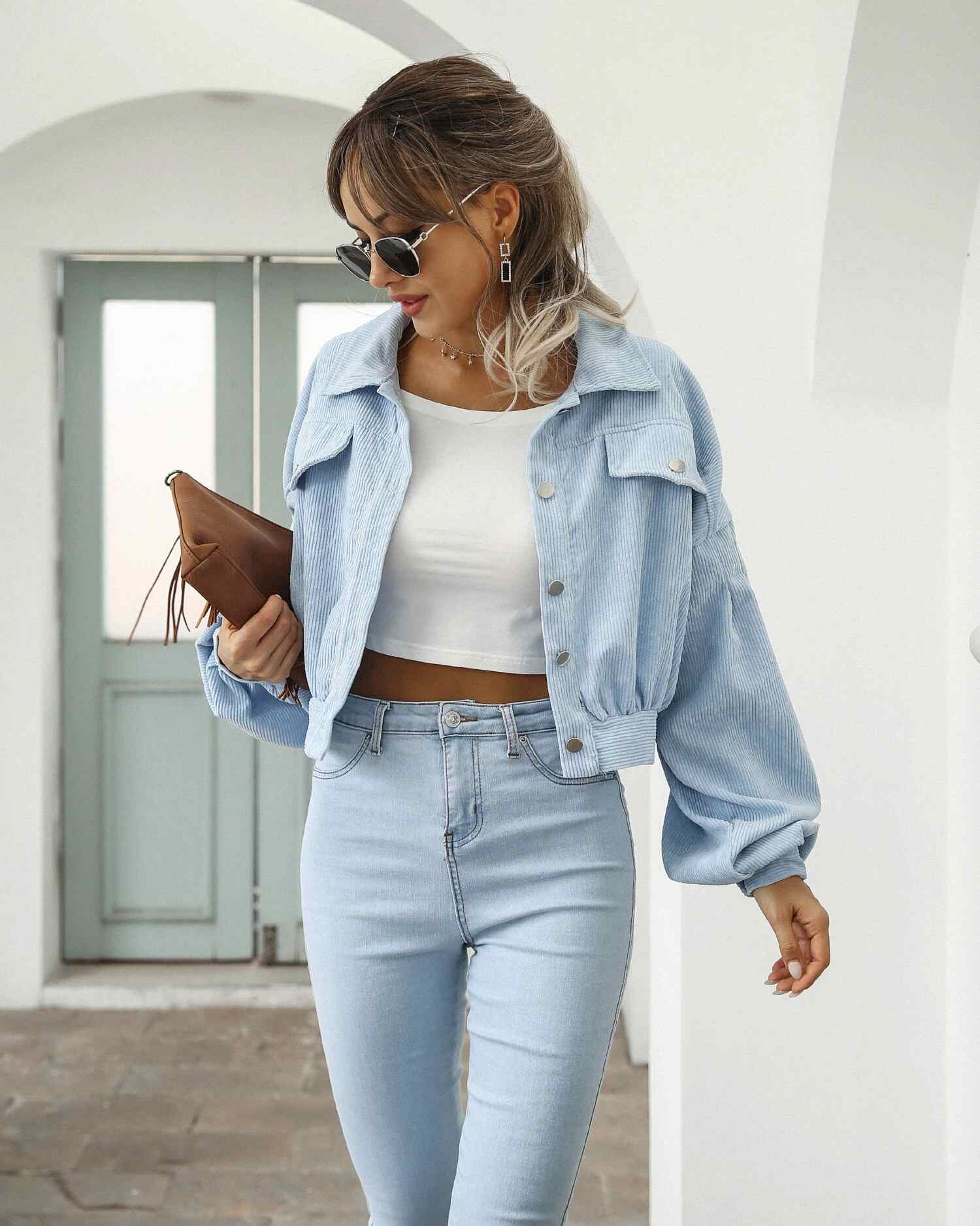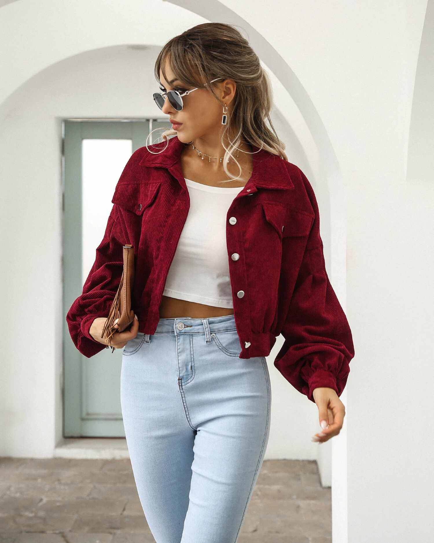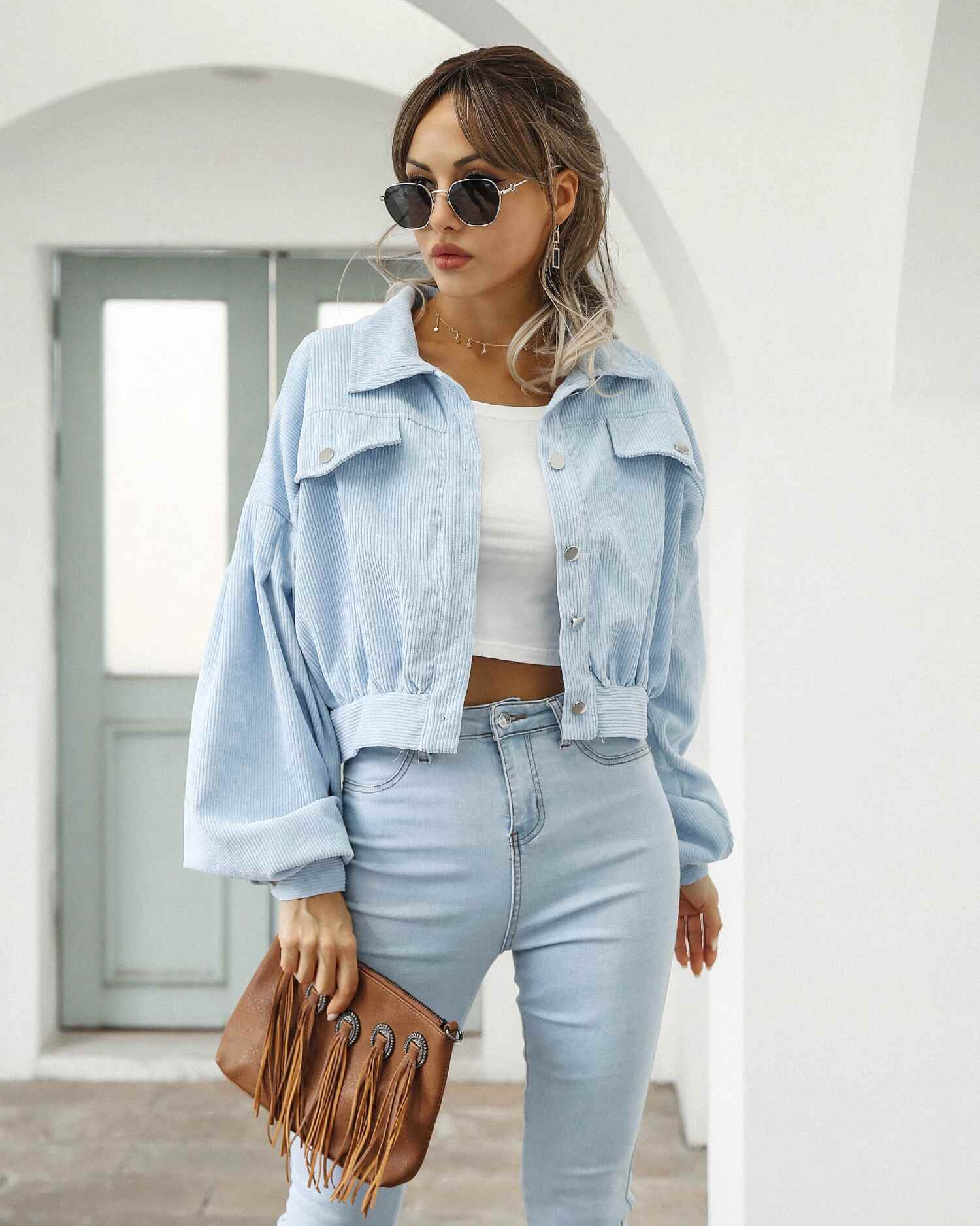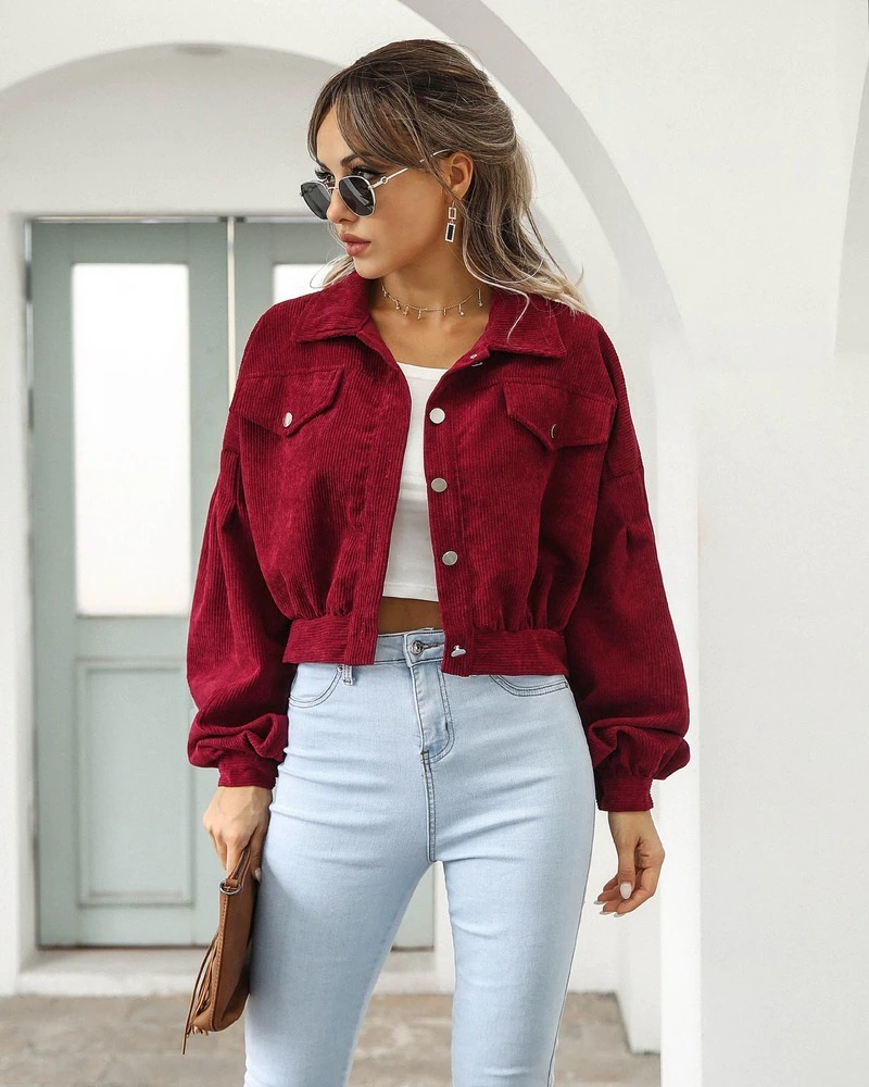 Sztruksowa kurtka bluza z szerokimi rękawami